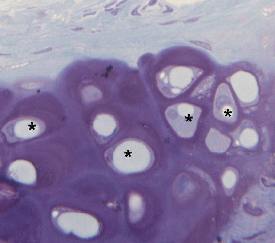 ¿Cual de las tres zonas señaladas corresponde al tejido cartilaginoso?