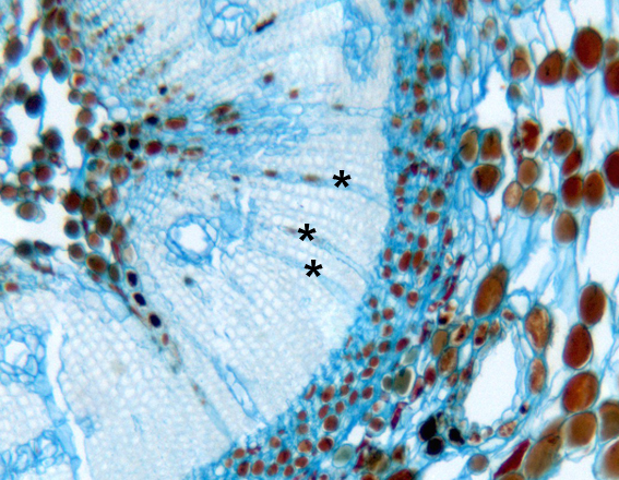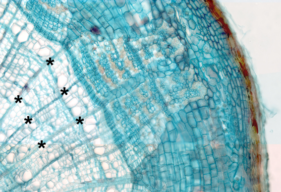 ¿Cual de las dos zonas Ao B corresponde al xilema?